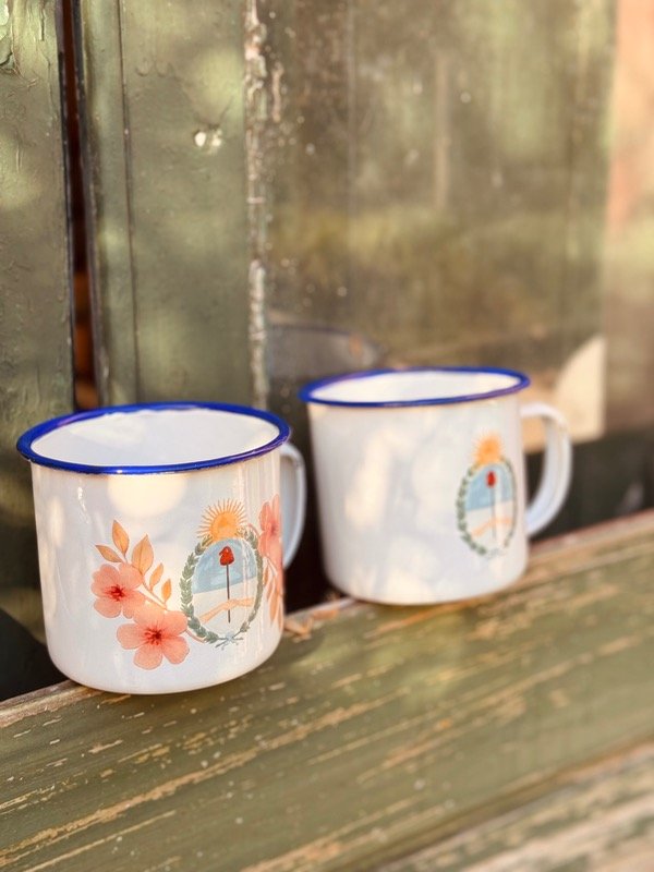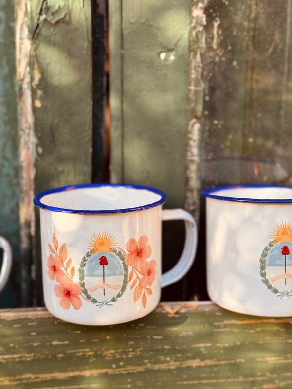 Cada jarrito enlozado tiene su propio diseño, por lo que no hay dos iguales. Son piezas prácticas y llenas de personalidad, ideales para acompañar el mate, café o té o esa rancheada y brindar con un vinito que le da un toque especial.