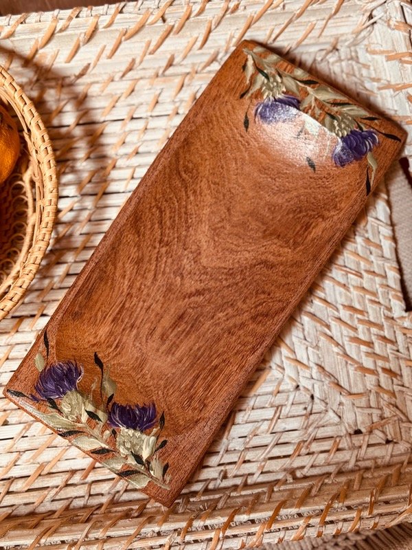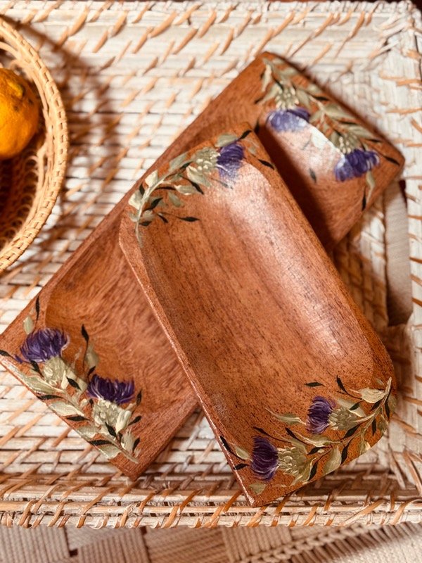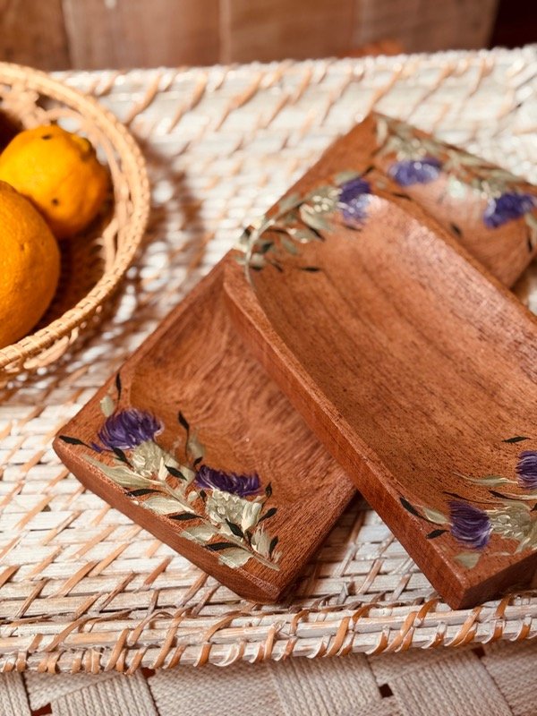 Tesoros rústicos y cálidos, hechos a mano en madera de algarrobo. Su tamaño justo las hace perfectas para acompañar mates, servir algo rico o usarlas como altar personal.