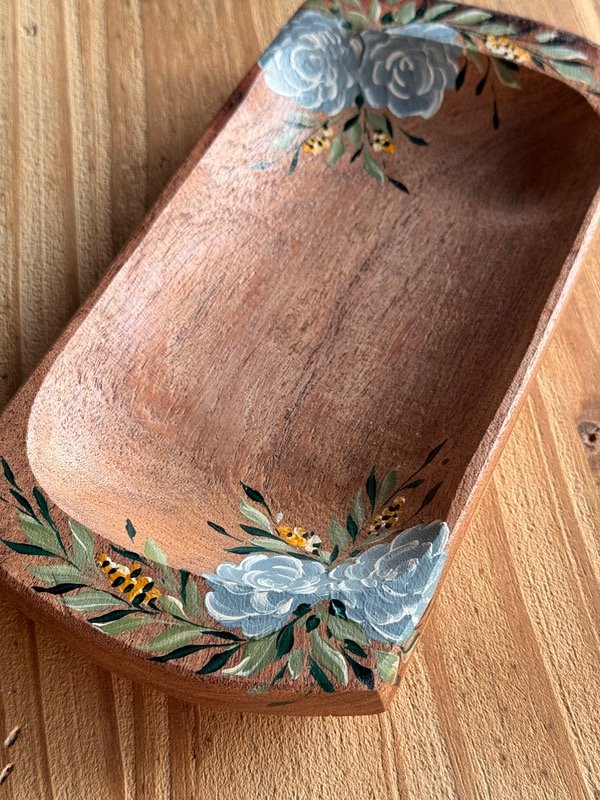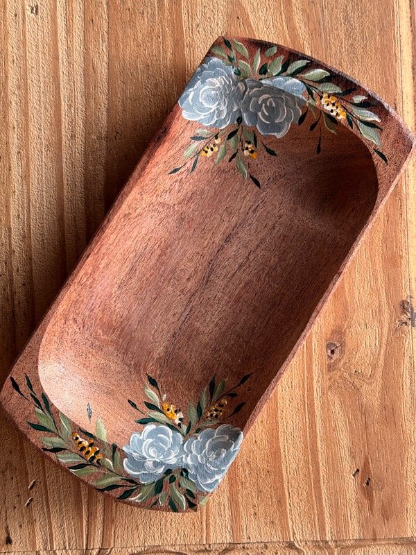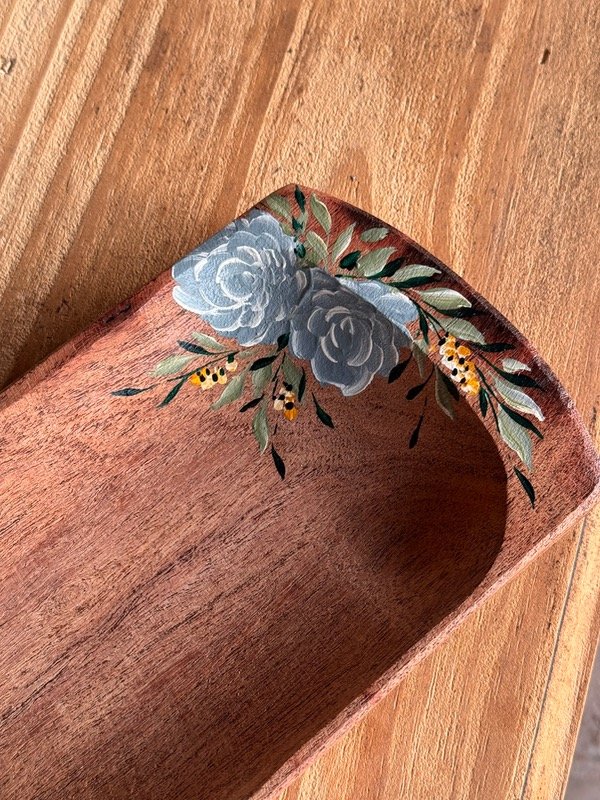 Tesoros rústicos y cálidos, hechos a mano en madera de algarrobo. Su tamaño justo las hace perfectas para acompañar mates, servir algo rico o usarlas como altar personal.