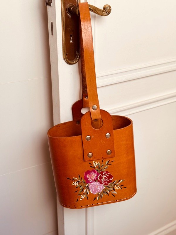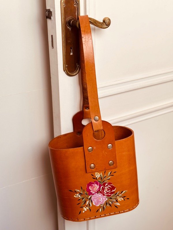 Hecha en cuero vaqueta de excelente calidad, esta matera es una pieza artesanal pensada para durar y acompañarte en cada ronda de mates. Su textura firme, los detalles cosidos y los remaches que refuerzan la manija le dan carácter, pero lo que la hace única es la pintura hecha completamente a mano, con tiempo, amor y dedicación.