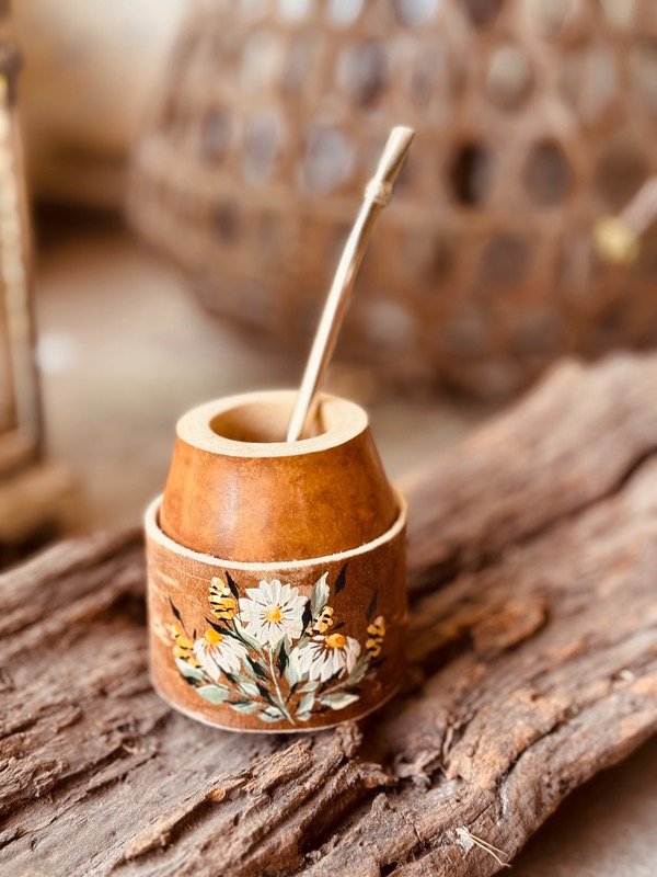 Mate criollo coquito de calabaza natural con base de cuero 100 % !
