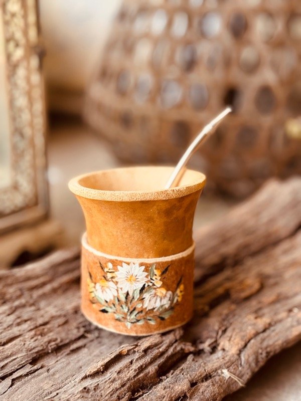 Mate criollo de calabaza natural con base de cuero 100 % !