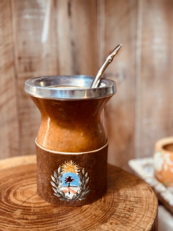 Mate criollo de calabaza natural con base de cuero 100 % !