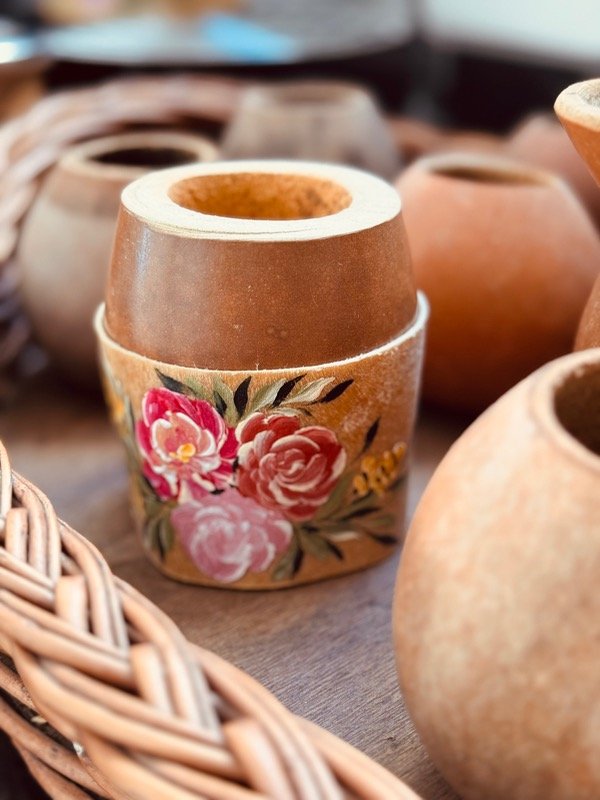 Mate criollo coquito de calabaza natural con base de cuero 100 % !