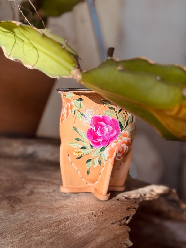 Mate de calabaza natural forrado en cuero 100 % vaqueta !