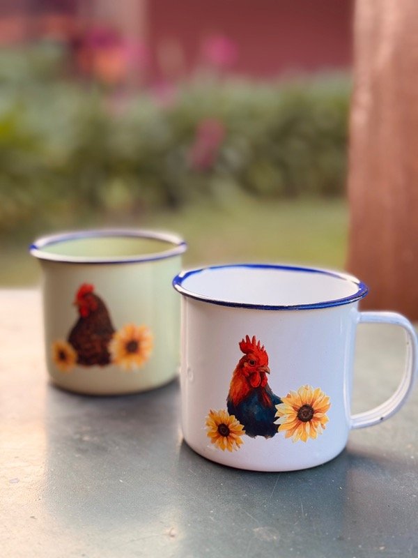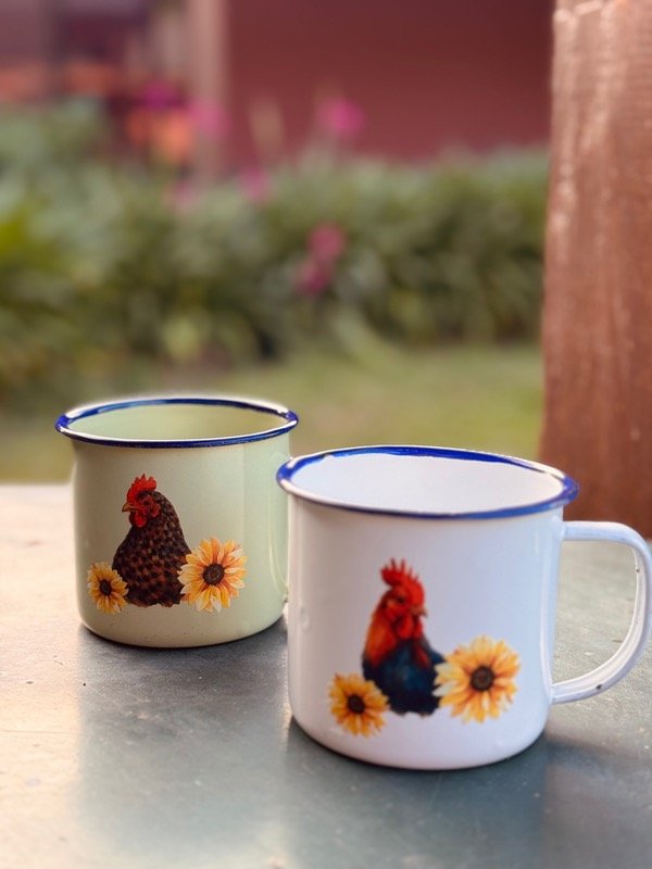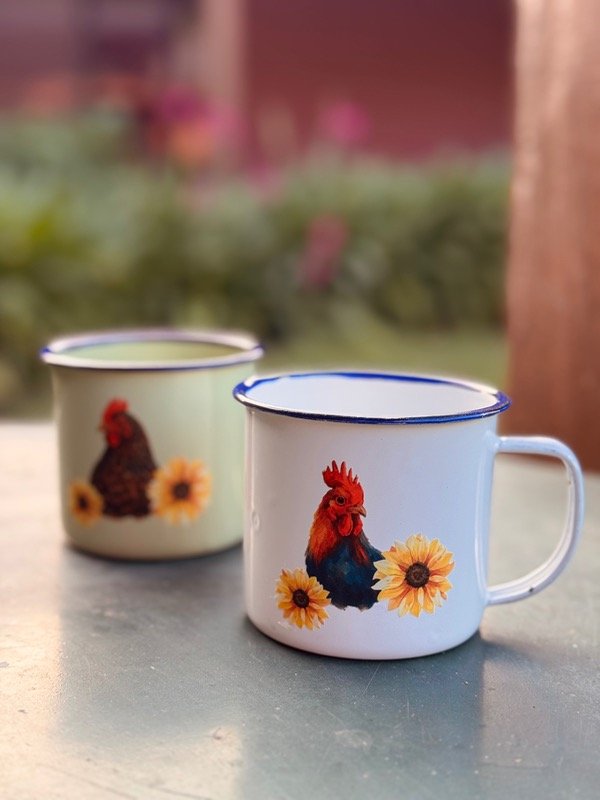 Cada jarrito enlozado tiene su propio diseño, por lo que no hay dos iguales. Son piezas prácticas y llenas de personalidad, ideales para acompañar el mate, café o té o esa rancheada y brindar con un vinito que le da un toque especial.