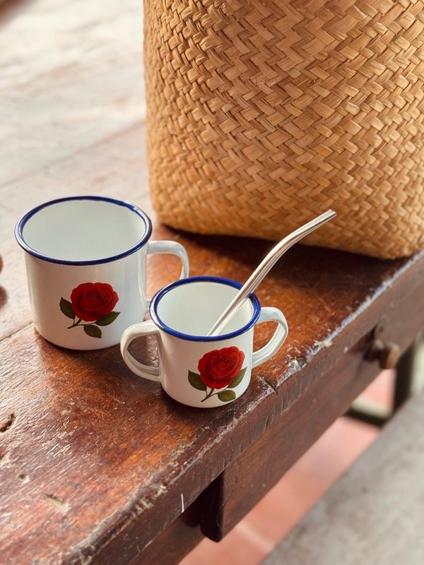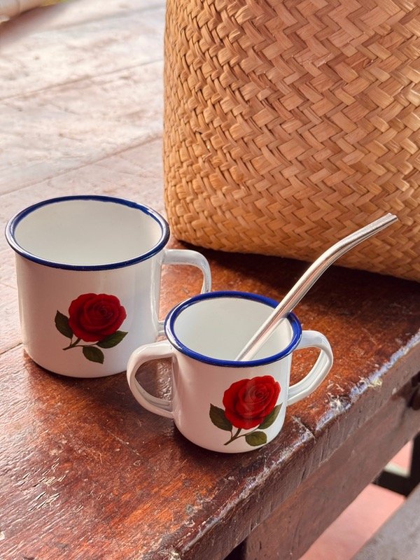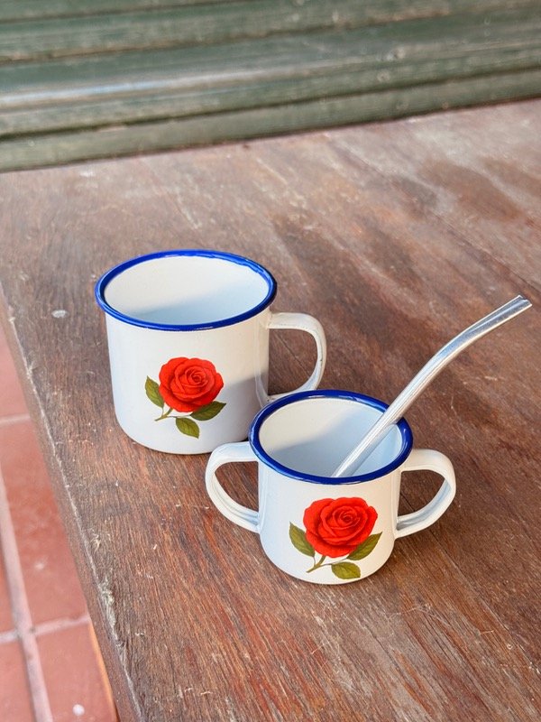 Cada jarrito enlozado tiene su propio diseño, por lo que no hay dos iguales. Son piezas prácticas y llenas de personalidad, ideales para acompañar el mate, café o té o esa rancheada y brindar con un vinito que le da un toque especial.