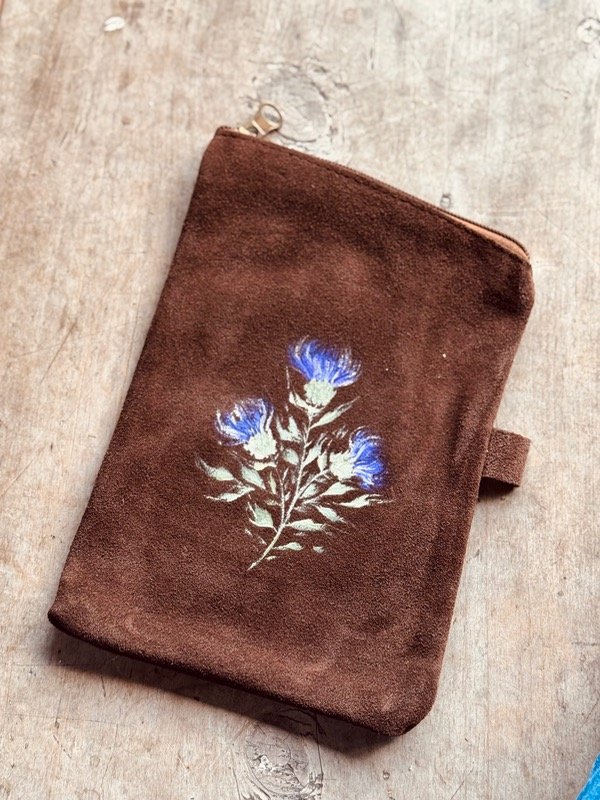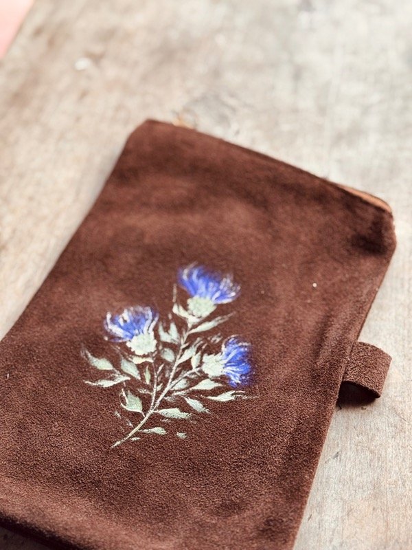 Yerbera en cuero gamuzado pintada a mano ✨