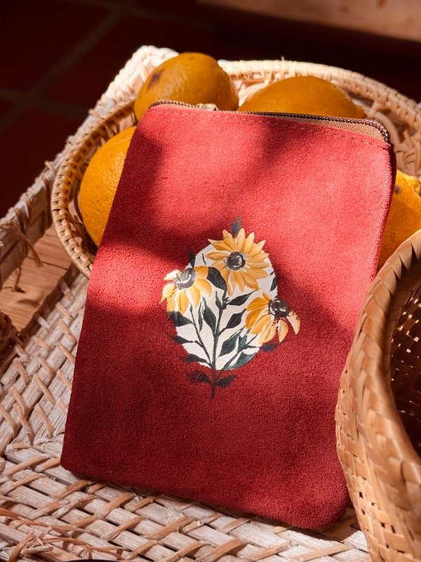 Una pieza única que combina lo artesanal con lo funcional. Hecha en cuero gamuzado, cada yerbera está intervenida a mano, convirtiéndola en mucho más que un accesorio: es una obra de arte para tu ritual del mate.