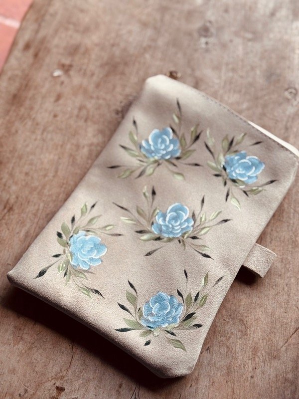 Una pieza única que combina lo artesanal con lo funcional. Hecha en cuero gamuzado, cada yerbera está intervenida a mano, convirtiéndola en mucho más que un accesorio: es una obra de arte para tu ritual del mate.