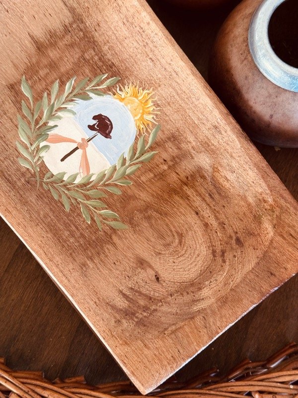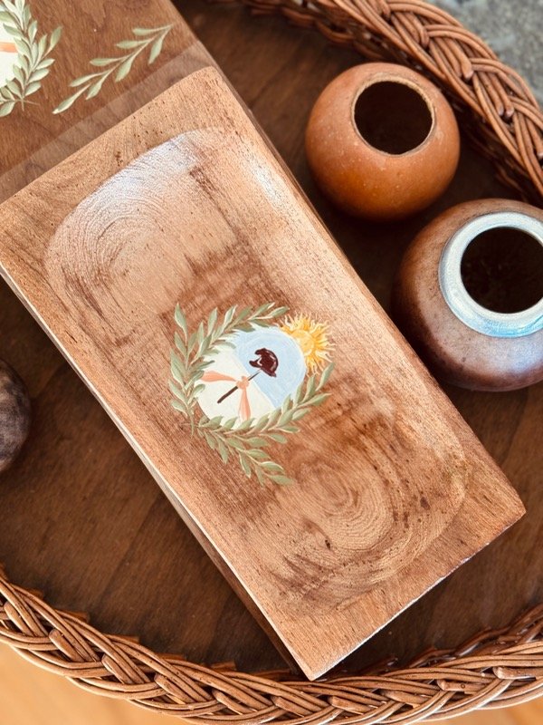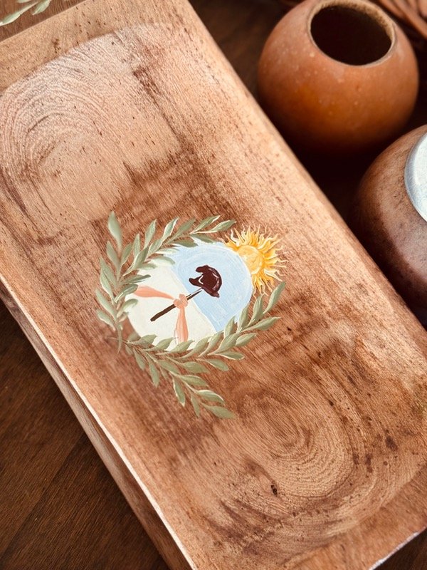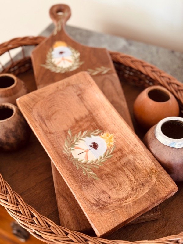 Tesoros rústicos y cálidos, hechos a mano en madera de algarrobo. Su tamaño justo las hace perfectas para acompañar mates, servir algo rico o usarlas como altar personal.
