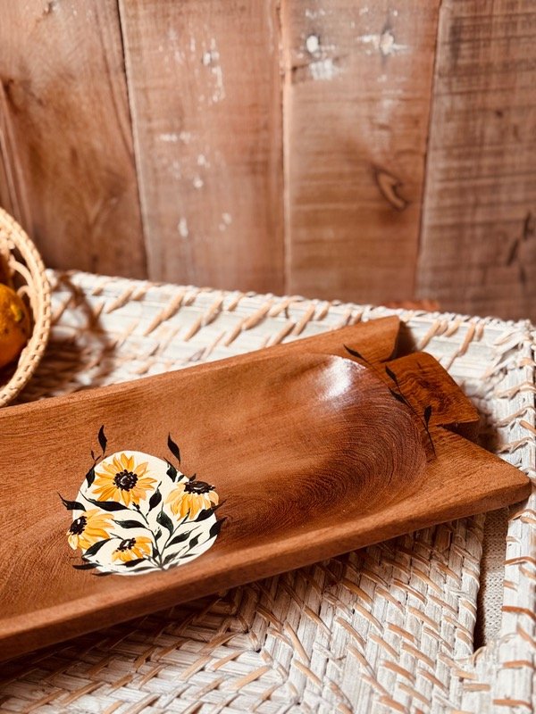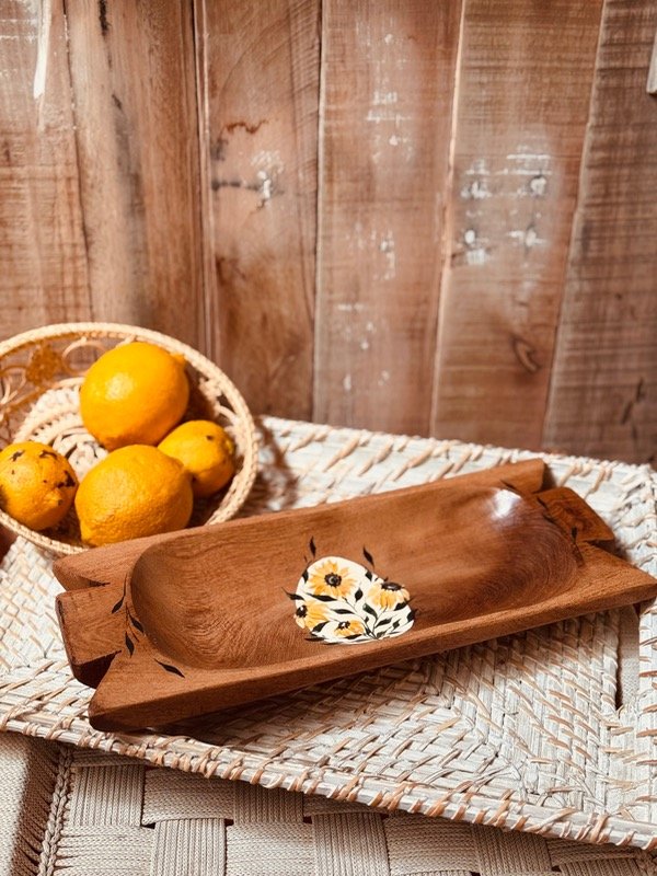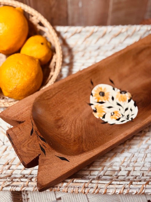 Tesoros rústicos y cálidos, hechos a mano en madera de algarrobo. Su tamaño justo las hace perfectas para acompañar mates, servir algo rico o usarlas como altar personal.