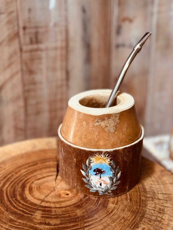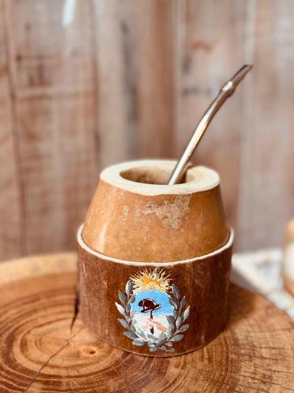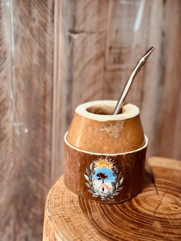 Mate criollo coquito de calabaza natural con base de cuero 100 % !