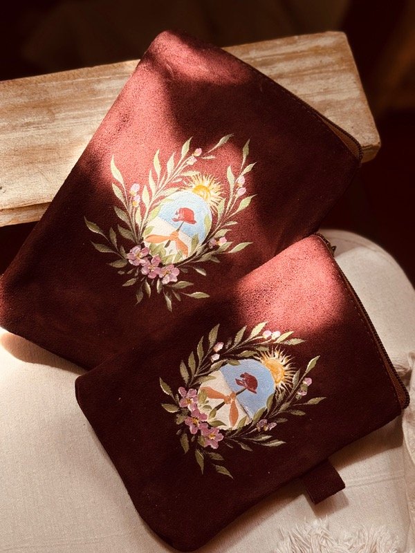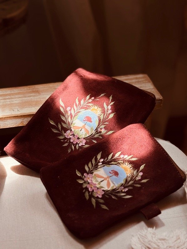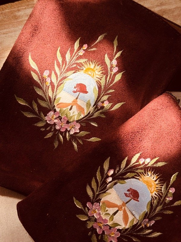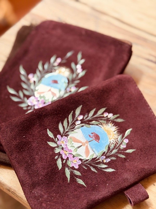Una pieza única que combina lo artesanal con lo funcional. Hecha en cuero gamuzado, cada yerbera está intervenida a mano, convirtiéndola en mucho más que un accesorio: es una obra de arte para tu ritual del mate.